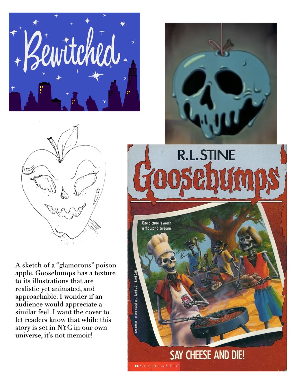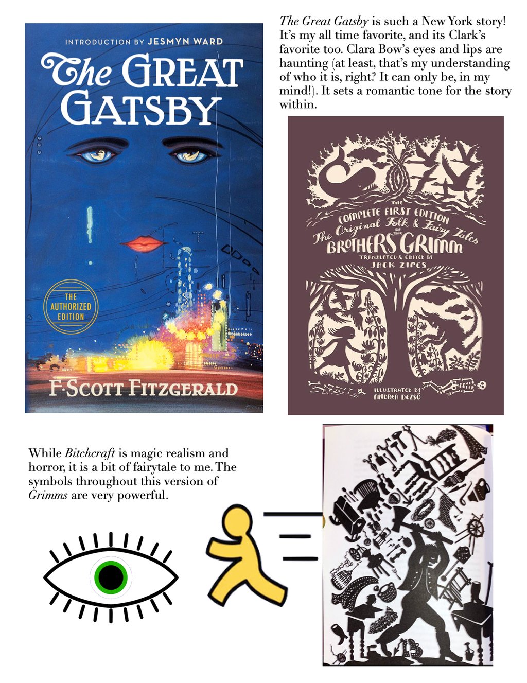 Other visual references include the covers for Goosebumps by illustrator Tim Jacobus, and a personal favorite copy of Grimm's Fairytales as they were originally told, one whose cover by Andrea Dezsö is etched into my memory: high-contrast papercut silhouettes of light vs. dark archetypes and symbols.