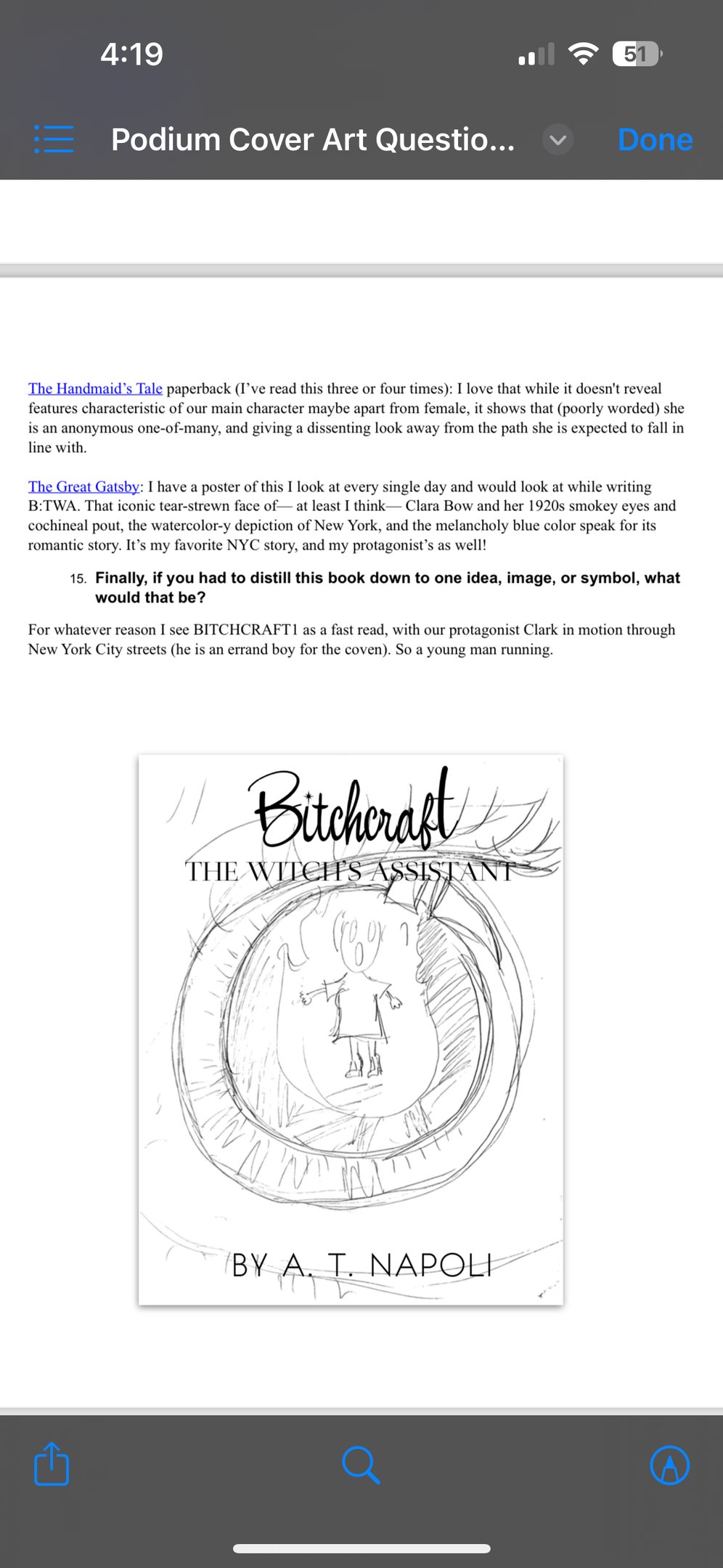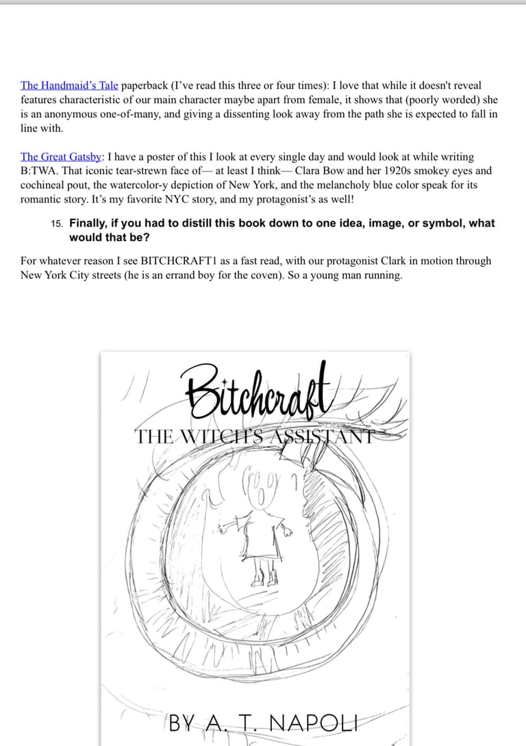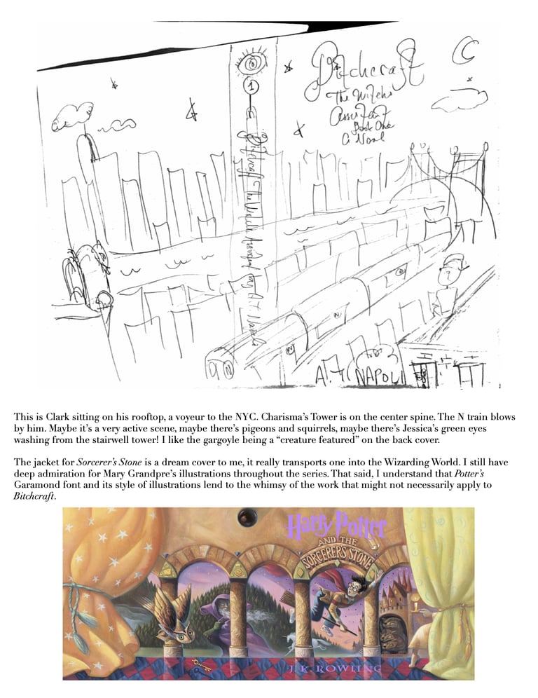 At the end of 2023, my publisher, Podium, asked for my thoughts on what the cover of The Witch’s Assistant🌙 should look like. I shared a few doodles and some very ~candid~ musings, along with reference art and my favorite covers, several of which are included below.
