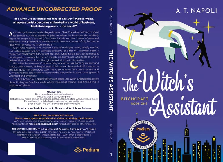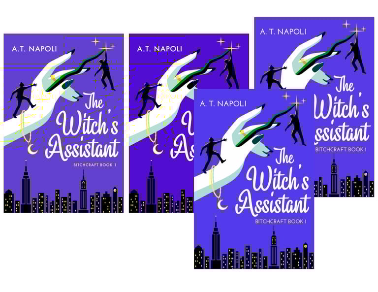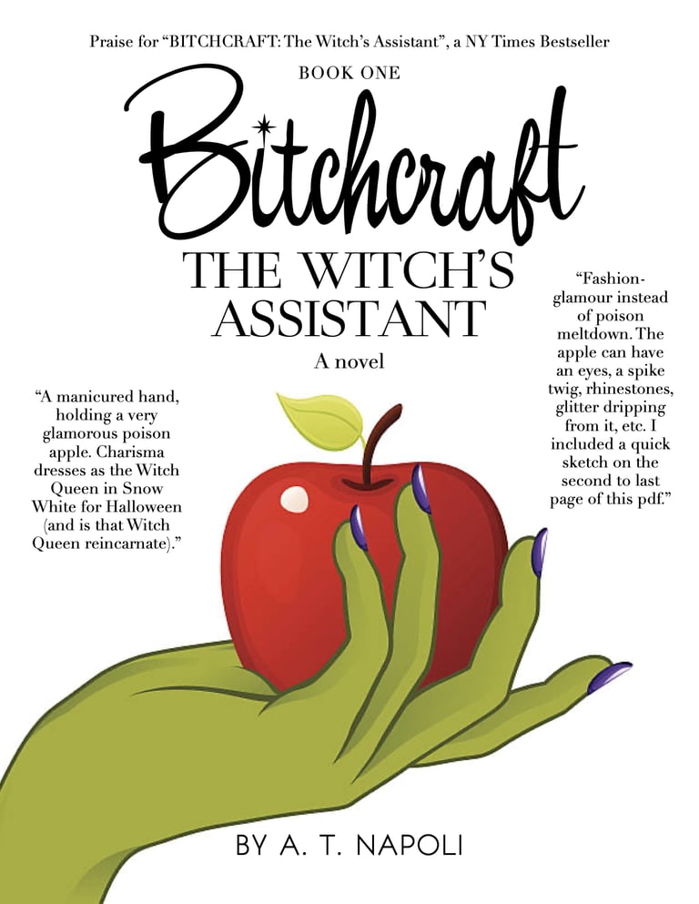 And notice the flip in title treatments? The flowery B*TCHCRAFT🌙 sits on top, while "THE WITCH'S ASSISTANT" is bold and severe, the opposite of how it landed in the final?